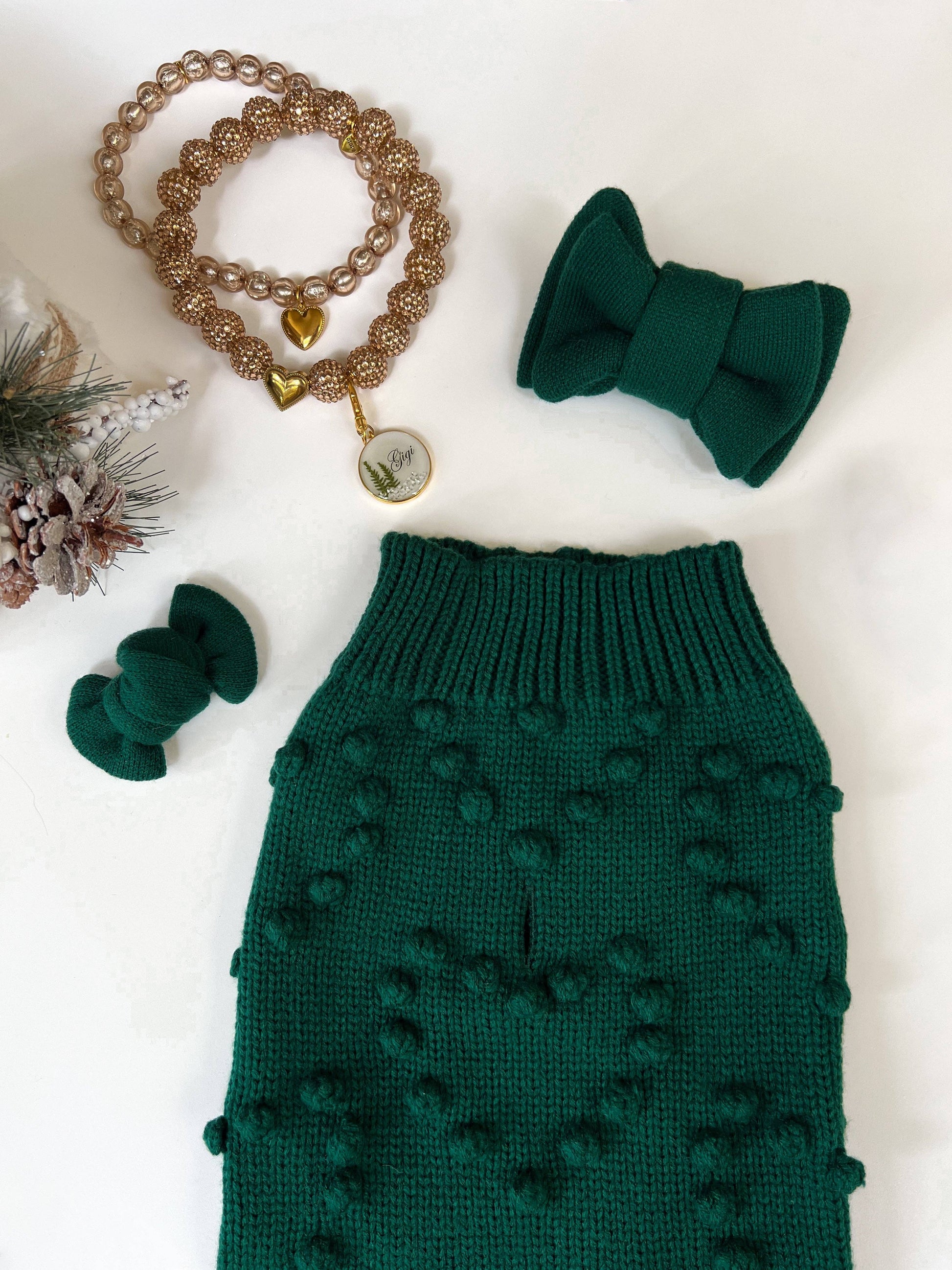 There's nothing cozier or cuter than a festive look in our new 'Evergreen Sweater'. Staying true to the classic Gigi’s hearted sweater, this sweater is what all paws wished for. Prepare yourself for a season of cuteness and comfort with Gigis.