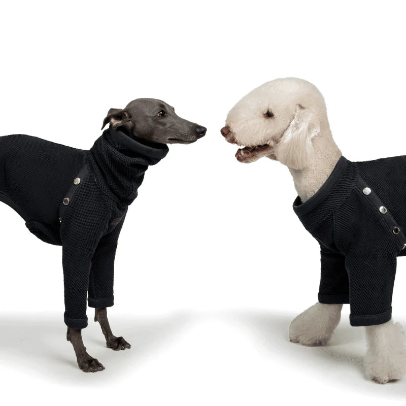 Prepare your pet for every adventure with the Odysseus Sweater. This sleek grayish navy blue sweater is your pet’s go-to for every walk, play date, and snooze fest. High-quality fabric shapes a classic silhouette that keeps your dog warm yet fashionable. Engraved buttons along either side effortlessly elevate the ensemble, making it a must for dressing in a pinch.